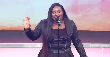 The performance itself was a testament to the musical genius of Tasha Cobbs. Her powerful voice reverberated through the stadium, igniting the crowd with her explosive energy and stage presence. With her long, curly hair swaying and her eyes closed in complete concentration, Tasha effortlessly delivered the lyrics of the song with raw emotion and heartfelt passion.