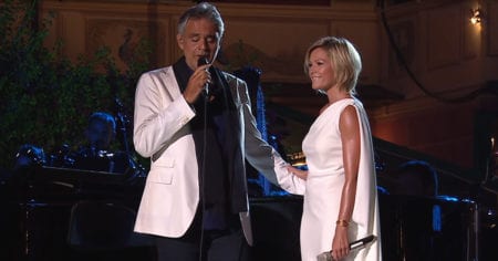There’s a good reason why love songs have been around for so long. People adore listening to the heartwarming lyrics and the soulful voices that sing them. Andrea Bocelli joins famous friends to belt out a cover of “When I Fall in Love.”