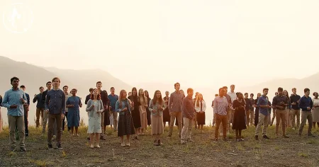 Following the young man, a young woman walks into the frame, singing the second verse with a celestial voice, while other students play various instruments. The video, captured in a scenic forest, becomes a visual and auditory feast as dozens of students join in, their voices harmoniously blending, celebrating God’s almighty and overwhelming power. The video is not only a testament to the students’ musical prowess but also a reflection of the beauty of God’s creation, captured by sweeping shots of the stunning scenery.