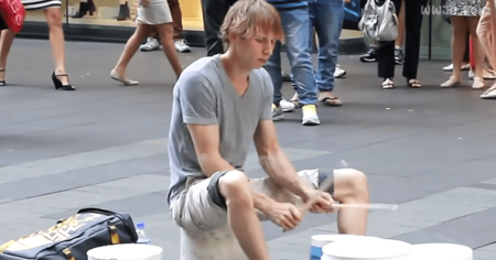 The video below features an incredible street performer from Sydney, Australia. He is called Gordo and he is an aspiring drummer. His random assortment of buckets might seem weird to most of us, but though he doesn’t have a proper drum set, this talented young man still knows how to throw out some mind-blowing beats.