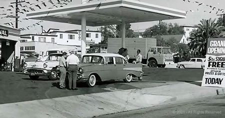In a beautiful video with perfect music, several vintage photos of 1950s gas stations demonstrate exactly that. The glossy look of those large, old, manicured service stations demonstrates that at the time, going to the gas station was meant to be fun.