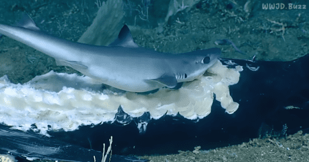 The amazing sights weren’t done yet, as just a few moments later, one of the sharks was eaten by a giant grouper. As one Youtube commenter put it: “Groupers aren’t particular. If it’s the right size and is another fish, swallows it, don’t worry, and let the stomach acids finish the job.”